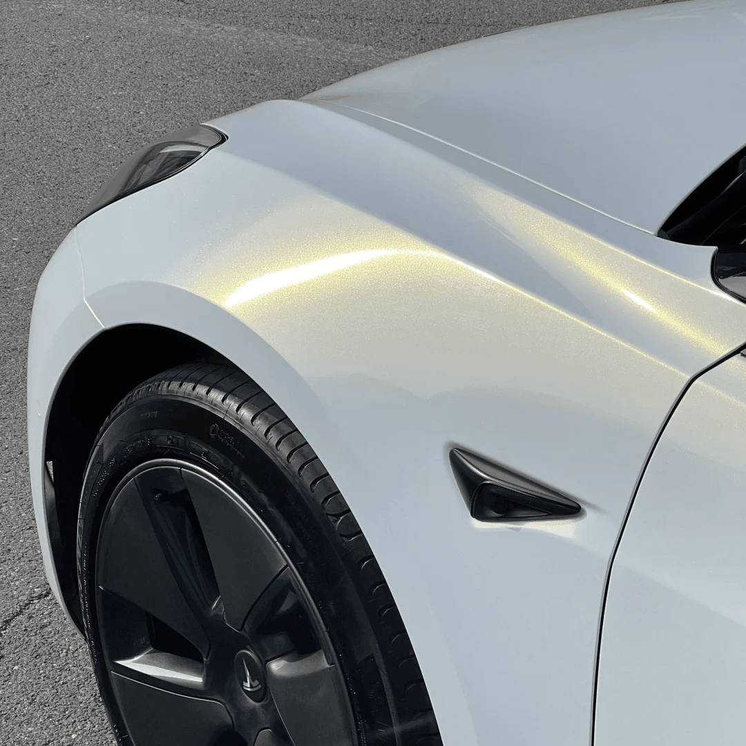 The white gold color-shifting wrap elevates your car’s aesthetic while enhancing its curves and contours with a rich, glossy finish. Whether you drive a modern Tesla, classic Mustang, or a rugged Jeep, this wrap adapts to any shape and style with a high-end feel.